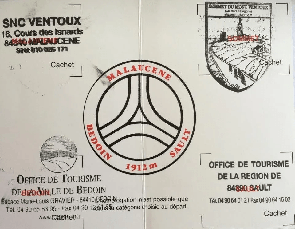 Last year with my son Jed rode the 'Cingles du Mont Ventoux' the 3 ascents From Bedoin, Malaucene and Sault . Rode the 135km, 4400m ascent in 7hr 15m. Now we are official members of 'Club des Cingle du Mont Ventoux'. http://www.clubcinglesventoux.org/